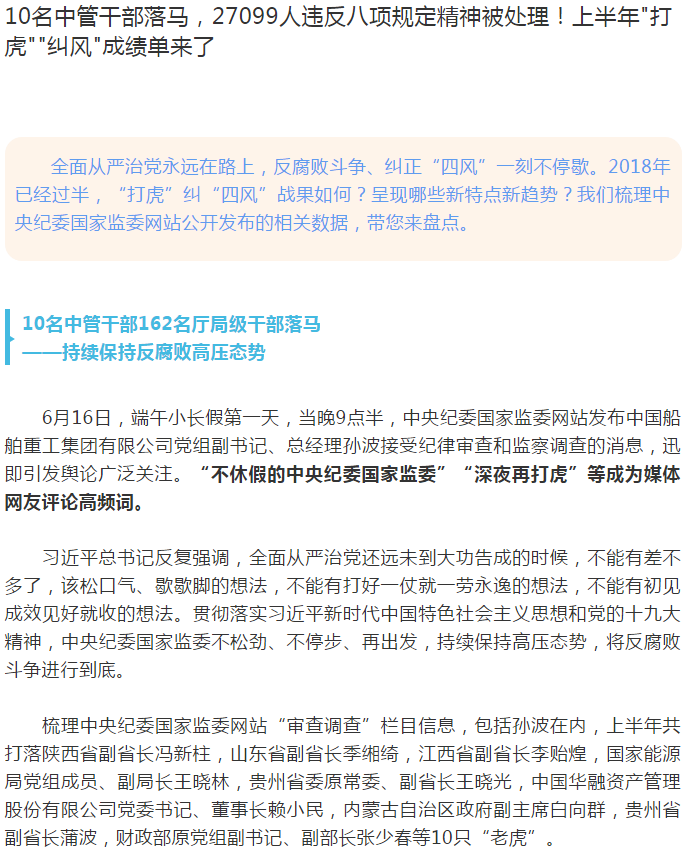 10名中管干部落馬,27099人違反八項規定精神被處理!上半年"打虎""糾風(fēng)"成績(jì)單來(lái)了
